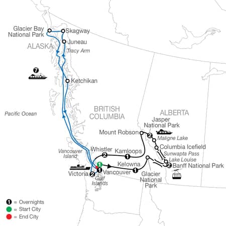 Day 1:ARRIVE IN VANCOUVER, BRITISH COLUMBIA Welcome to Vancouver! At 6 pm, meet your travel companions for a welcome drink. Your Tour Director will prepare you for your upcoming adventure.